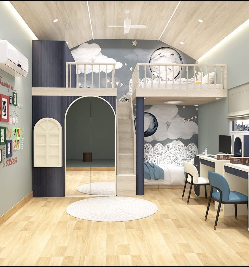 We design rooms where imaginations can run wild. Our kids' rooms are safe, playful, and practical, featuring custom beds, integrated study tables, and plenty of smart storage for toys, books, and treasures.