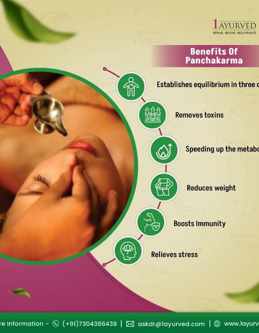 Panchakarma is not a spa treatment; it is a series of intensive, medically supervised cleansing therapies. We use these procedures like Vamana, Virechana, and Basti to systematically remove deep-seated toxins ('Ama') and restore your body's natural balance.