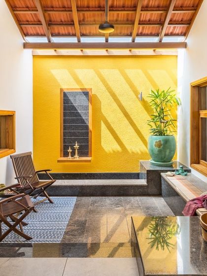 We design interiors that mix modern and South Indian styles using natural materials, and work with you at every step to create custom spaces like puja rooms, reading nooks, and built-in furniture.