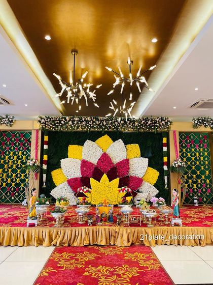 Hi, ellarigu namaskara! We started 21 Plate Decoration in Bengaluru, just wanting to make celebrations look and feel special. Four years, 700+ events, and still loving every bit. Waking up before sunrise, driving crazy distances, all for that one moment when someone says, 'Idu tumba chennagide' (this is so beautiful). That’s the best part. Old traditions, new ideas, every event feels like a new chapter with flowers, dolls, and our plates.
