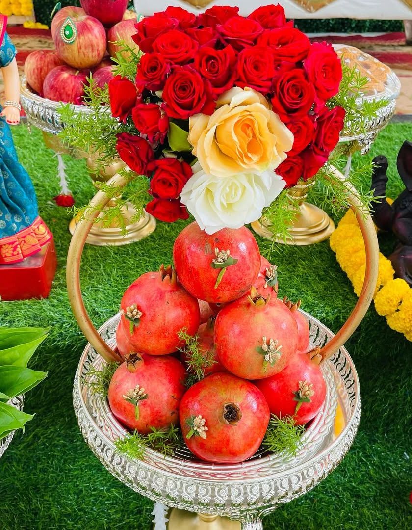 I believe that offerings should be as beautiful as the ceremony itself. I specialize in creating stunning arrangements of fresh fruits and flowers in decorative baskets and stands, which serve as both elegant decor and blessed prasad.