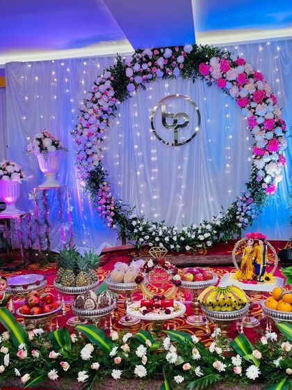 My style is a mix of South Indian ceremonial decor and a few modern twists. I’m known for combining beautiful backdrops with detailed traditional plate arrangement, so your event feels complete. I handle all kinds of functions: