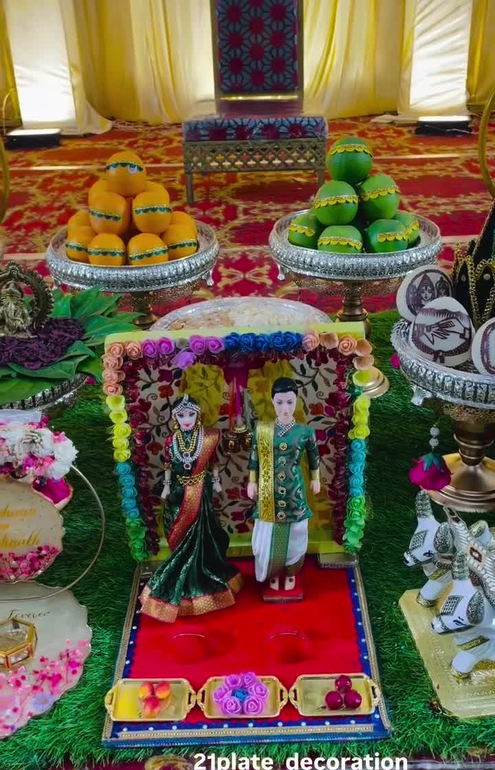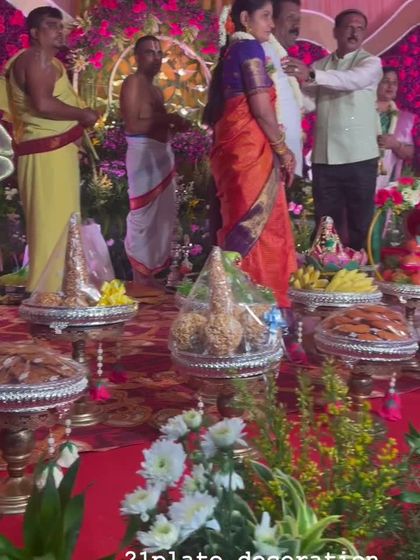I create beautiful, traditional Seemantham decorations to celebrate the mother-to-be. Each setup includes a decorated swing or chair, a stunning backdrop, and my signature plate arrangements with fruits, sweets, and bangles, making the day feel truly divine.