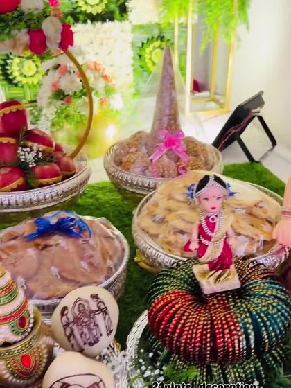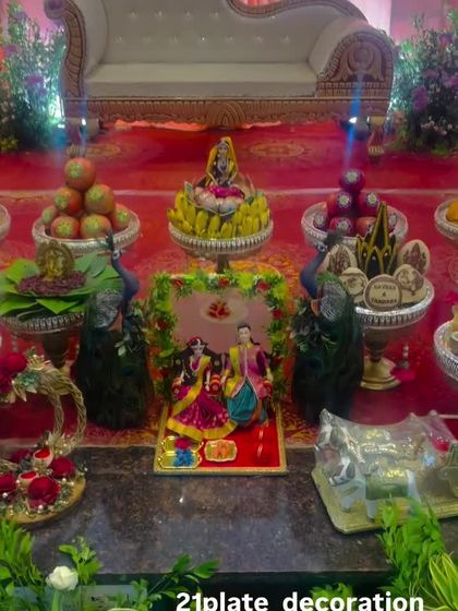 I make your new house feel like a home with authentic Gruha Pravesha decorations. This includes traditional chappara setups, door and kitchen decor, and beautiful deity arrangements to bring a divine and welcoming atmosphere to your celebration.