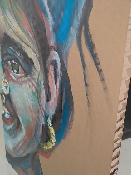 I create vibrant acrylic paintings on canvas, linen, and silk, exploring themes of feminism, social justice, and Indian culture. My work often incorporates elements from Tamil literature and ecological themes, using bold colors and intricate details to convey powerful narratives.