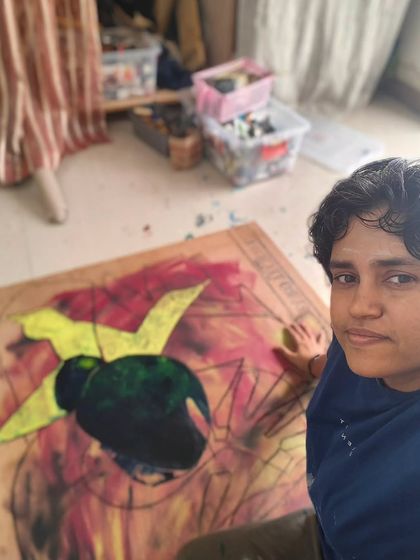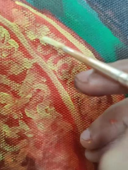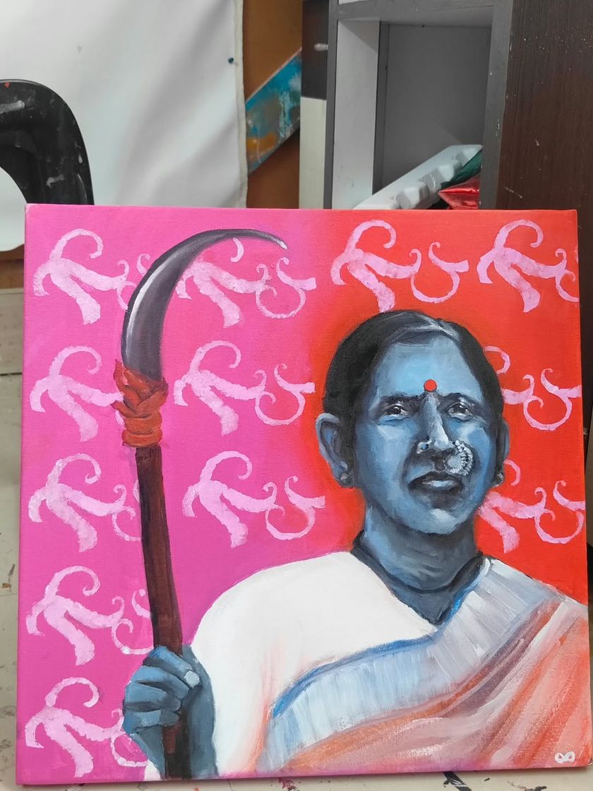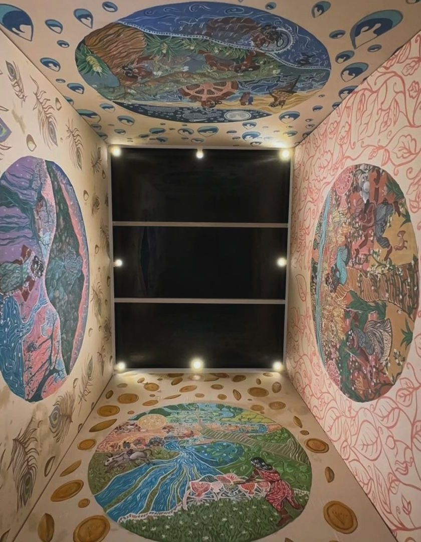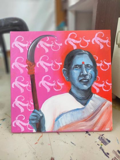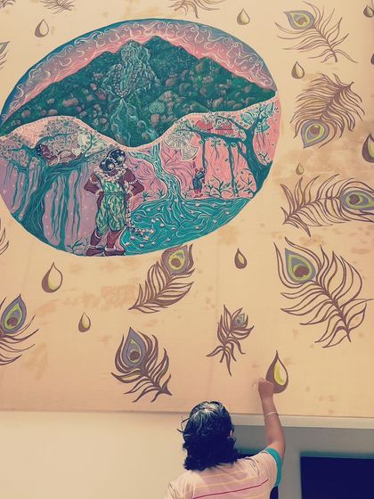 This was a massive commissioned project reinterpreting the five classical Tamil landscapes (Thinai) through a modern, feminist lens. Each of the four large paintings, created with acrylic on Tussar Munga silk, explores themes of female empowerment, leadership, and self-love within the traditional poetic framework.