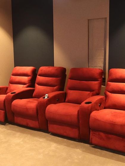 We specialize in creating bespoke furniture solutions under our @fezmo_eazy_living brand, specifically designed for luxury home theaters. Our offerings include custom-made recliners and tiered seating arrangements that perfectly complement high-end home cinema installations.