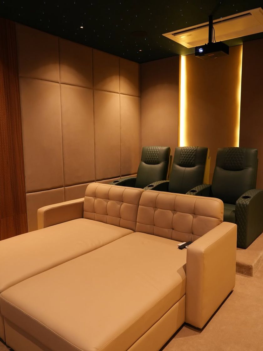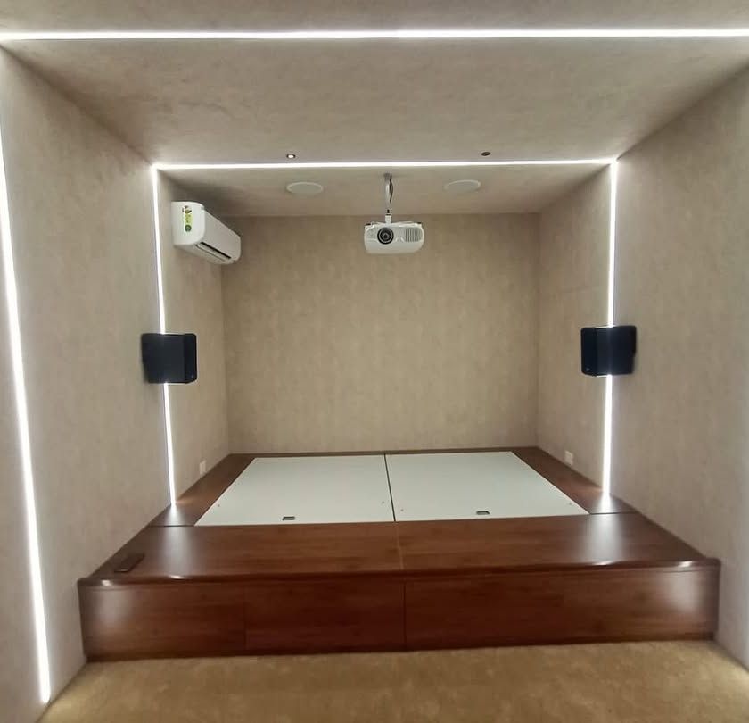 You don't need a massive room to have an incredible home cinema. I specialize in designing compact theaters that maximize smaller spaces without compromising on quality or immersion. These setups are perfect for personal use or small families, featuring smart layouts, efficient acoustic treatments, and high-quality equipment tailored for the room size.