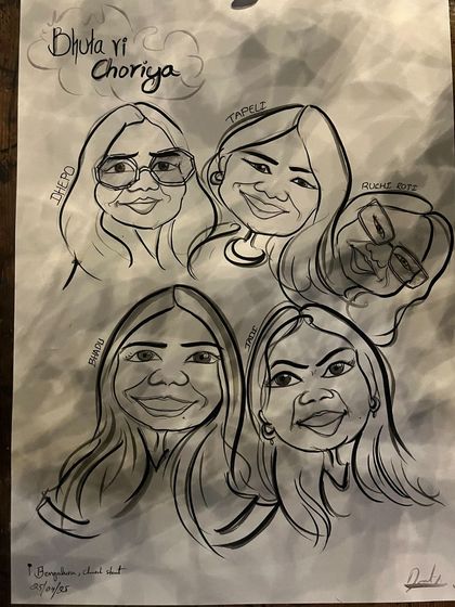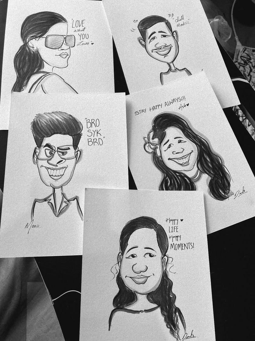 This is a handpicked collection of my favorite pieces. It shows the fun, the smiles, and the heart I put into every single hand-drawn caricature, from solo portraits to big family groups.