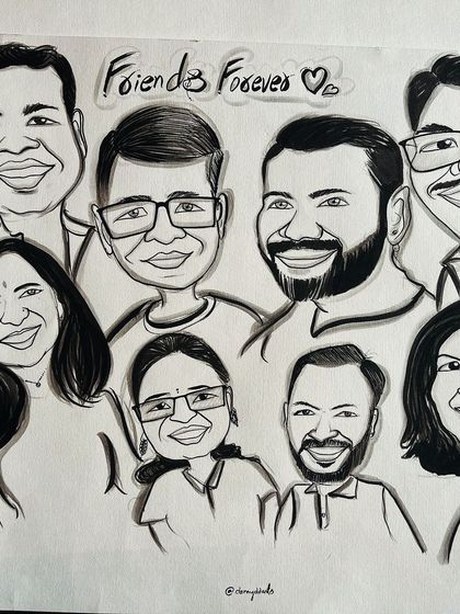 Get the whole squad together in one drawing. I create group caricatures for families, friends, and teams, making sure to capture the spirit of your group.