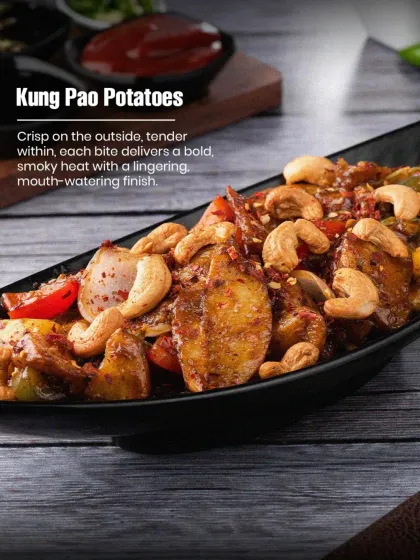 Desserts, Cakes & More - We do all-veg custom cakes, pastries, brownies, croissants, bubble tea, and even snacks like fries and Kung Pao potatoes.