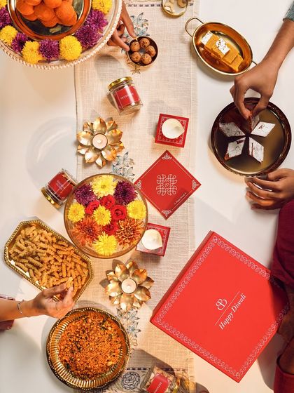 - Diwali: Mix of classic dry fruits, artisanal sweets for celebrations, flavored teas, and festive decor. Packed in bright, paisley or ribbon-finished boxes.