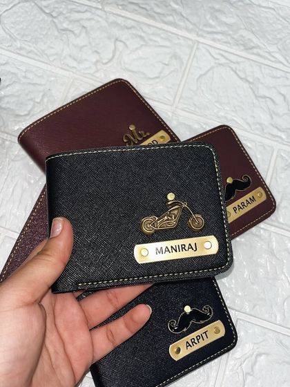 - Name engraved wallets: Luxe feel, custom nameplates, and a fun charm.