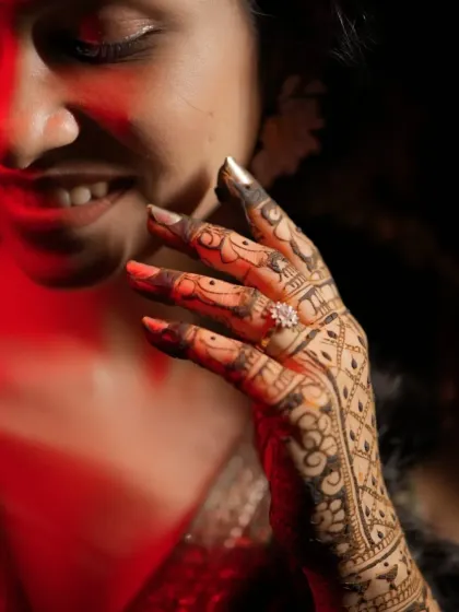 I specialize in intricate bridal mehndi designs featuring traditional motifs like peacocks, florals, and geometric patterns. Each design is personalized to include elements significant to the bride - from initials and portraits to symbols representing your love story.