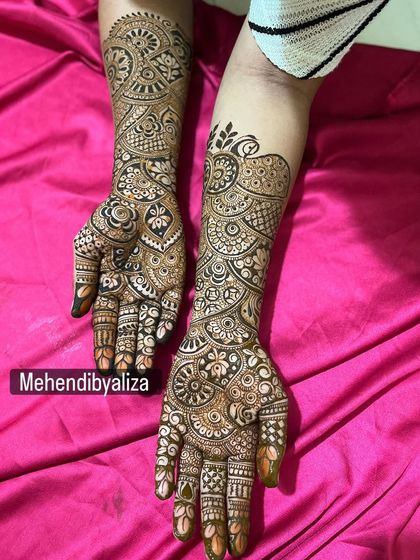Hi, I’m Aliza. People see pretty mehendi on hands, but don’t see the hours, the kamar dard (back pain), the late nights. Mehendi is my peace, my healing. Folks joke, 'Artist ho, padhna nahi padta hoga?' (You’re an artist, you don’t need to study?) But trust me, it’s hard work. When someone says, ‘Aliza, yeh bilkul waise hi hai jaise photo dikhaya tha’ (Aliza, this is exactly like the photo I showed), that makes it all worth it. Mehendi for me is ishq, a story, and I just help tell it.