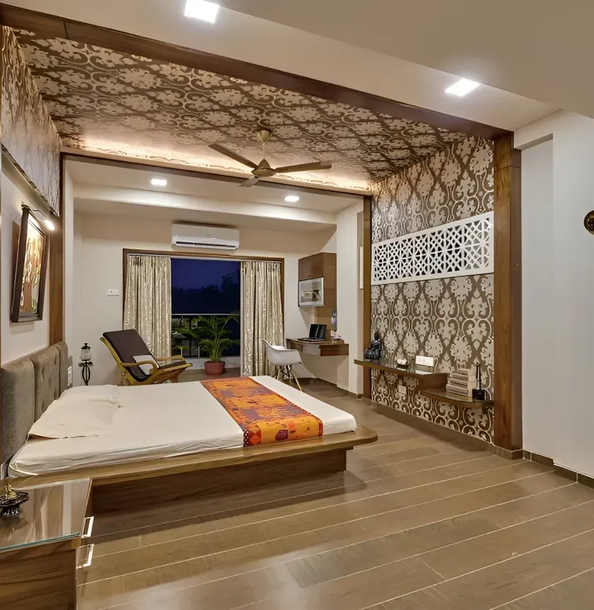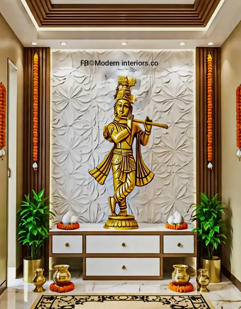 We design serene and beautiful pooja rooms and mandir units that respect tradition while fitting into a modern home. Our designs incorporate elements like intricate jaali work, bells, backlighting, and storage for a peaceful and organized sacred space.