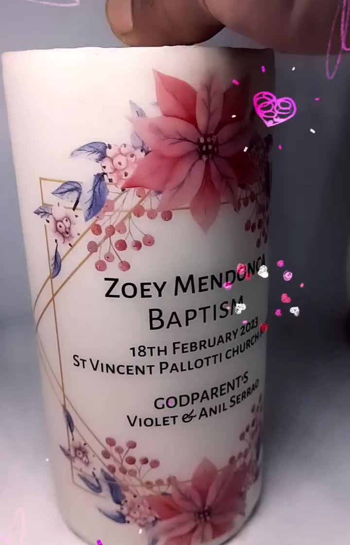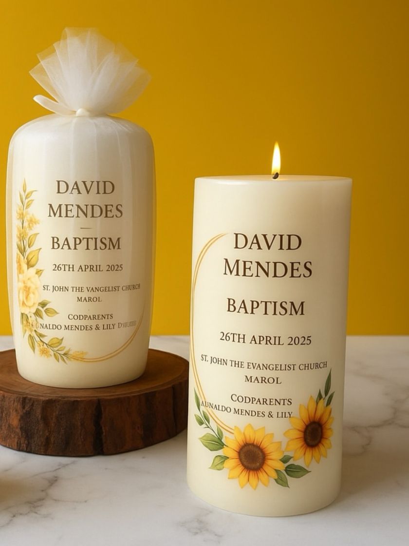 Mark sacred milestones with a personalized candle. I can print names, dates, church details, and even Bible verses to create a lasting memento for baptisms, first communions, or as a thoughtful spiritual gift.