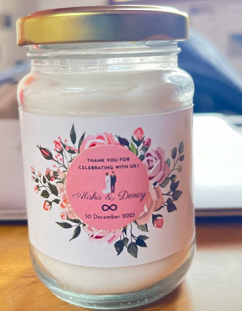 I create beautiful return gifts and keepsakes for your special day. From rustic jar candles for guests to elegant pillar candles for the couple, I can customize the design, scent, and message to match your wedding theme.