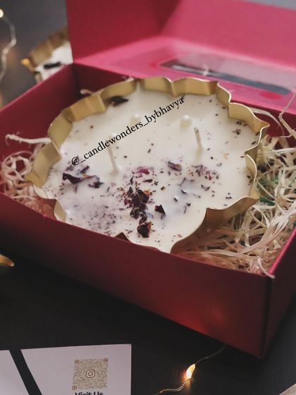 We create fully customizable gift hampers featuring our handcrafted candles and premium products. Each hamper can include scented candles, diffusers, wax sachets, chocolates, and sweets based on your preferences.