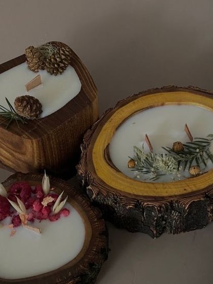 We create premium handcrafted candles using eco-friendly soy wax in various designs - from mini jar candles to decorative pieces like rose bears, water lilies, and themed collections. Each candle is hand-poured and can be customized with personalized fragrances, colors, and packaging.