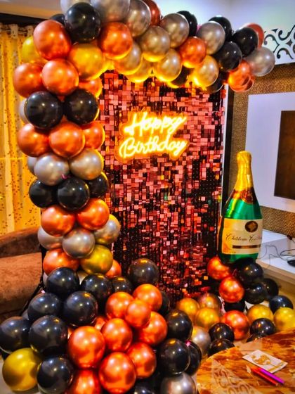 I specialize in creating intimate and romantic settings for anniversaries, proposals, or just a special surprise for your partner. My services range from elaborate room transformations with ceiling balloons and fairy lights to stylish backdrops with heart motifs and custom signs for a larger party.