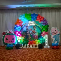 I bring your child's favorite characters and stories to life with fully themed party decorations. From popular cartoons like Cocomelon and Sonic to classic themes like superheroes and jungle adventures, I create a complete visual experience with custom backdrops, character cutouts, and colorful balloon arrangements.