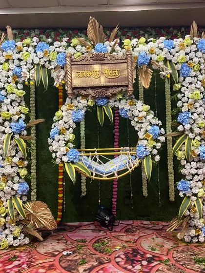 Naamkaran is close to my heart. I put extra effort into decorating the baby’s cradle (palna/jhula) with flowers, garlands, and balloons. Full stage backdrops with the baby’s name or a wooden nameplate are popular. If you want to go the fun route, I can do Peppa Pig or Cocomelon themes too.