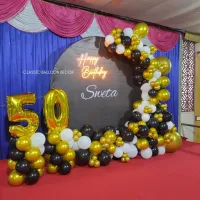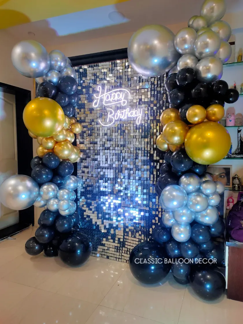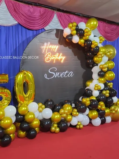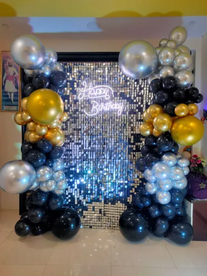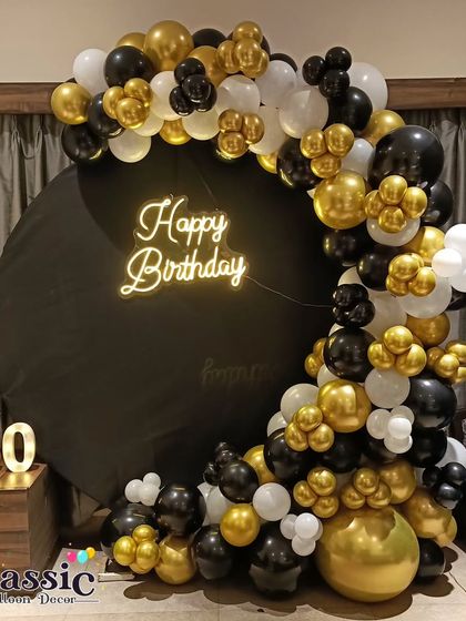 We create sophisticated and stylish decorations for milestone birthdays, from 18th to 80th and beyond. We use elegant color palettes like black and gold or rose gold and silver, and incorporate elements like marquee numbers, custom neon signs, and beautiful balloon arches to make the occasion special.