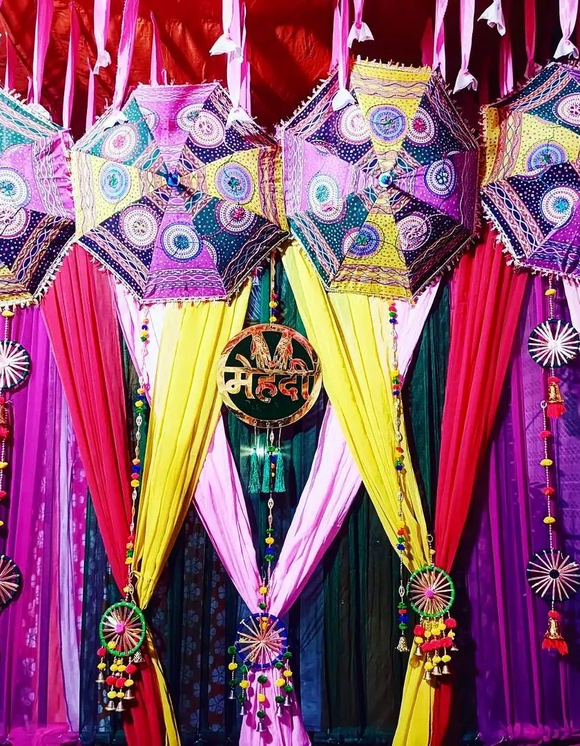 I bring life to your pre-wedding functions with colorful and thematic decor for Haldi and Mehndi ceremonies. I use elements like bright fabric drapes, traditional props like Rajasthani umbrellas, floral arrangements, and custom signages to create a festive atmosphere.