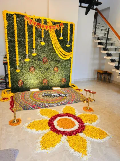 I create complete setups for your baby's first rice-eating ceremony, a milestone filled with blessings. I offer both traditional decor with marigold flowers and lush greenery, as well as modern themes with personalized backdrops and balloon arrangements.
