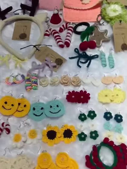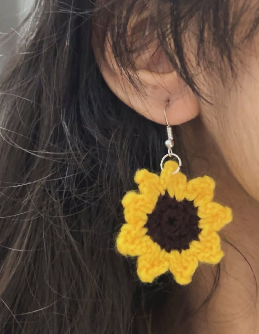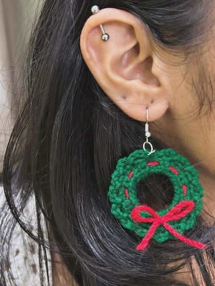 Add a playful touch to your look with my collection of lightweight crochet earrings. I offer a variety of quirky and cute designs, including sunflowers, smiley faces, hearts, and festive wreaths, all handmade with soft yarn.