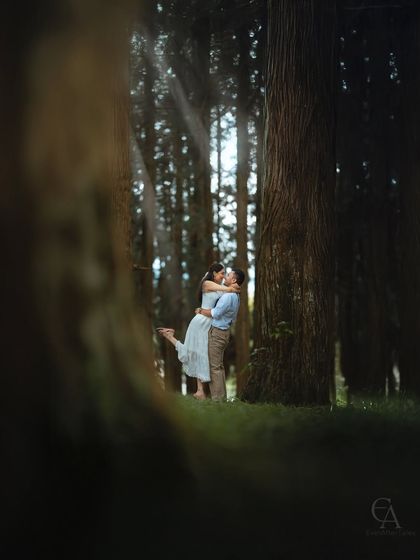 For that "lost in the forest, found in each other's hearts" feeling, we venture among towering trees. I use the natural light filtering through the canopy to create dreamy, intimate portraits that feel like a private fairytale.