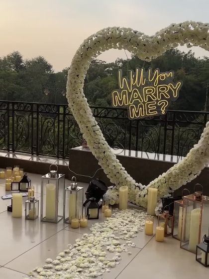 - Marquee Letters: Large 2.5ft to 3ft tall illuminated letters spelling MARRY ME (or equivalent 7 to 8 letter phrase).