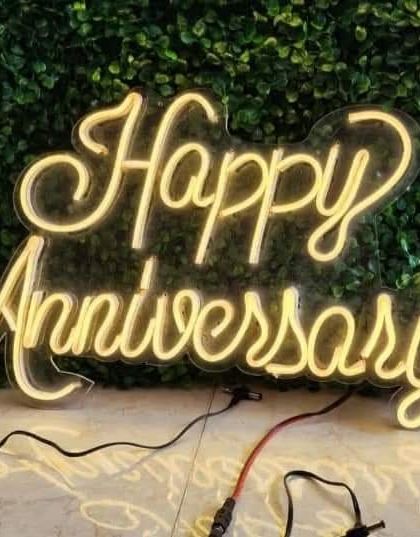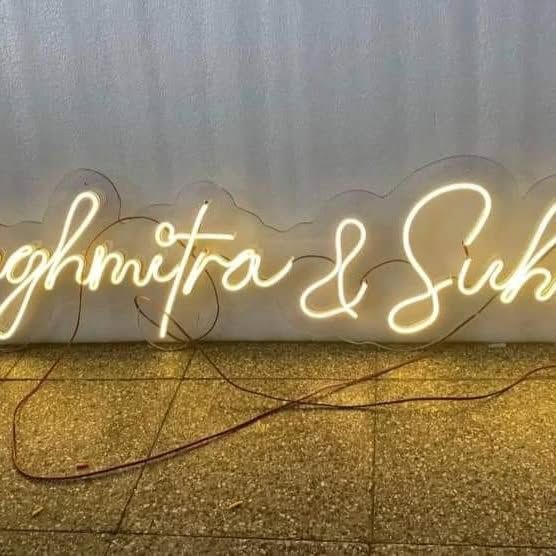 Add a personal and modern touch to your event with our custom props. We offer high-quality neon signs with your names, hashtag, or any phrase, available for both rent and sale. We also provide smaller details like decorated ring platters to complete your theme.