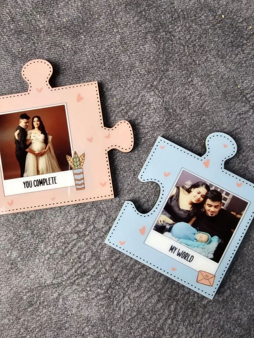 Keep your memories close with my custom fridge magnets. I offer designs like rope-themed frames and cute interlocking puzzle pieces for couples, perfect for adding a personal touch to your kitchen.