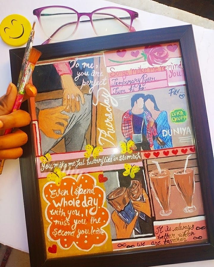 For something truly one-of-a-kind, I create hand-painted and decorated mood board frames. These are perfect for telling a story with a mix of photos, quotes, and artistic elements, all handmade by me.