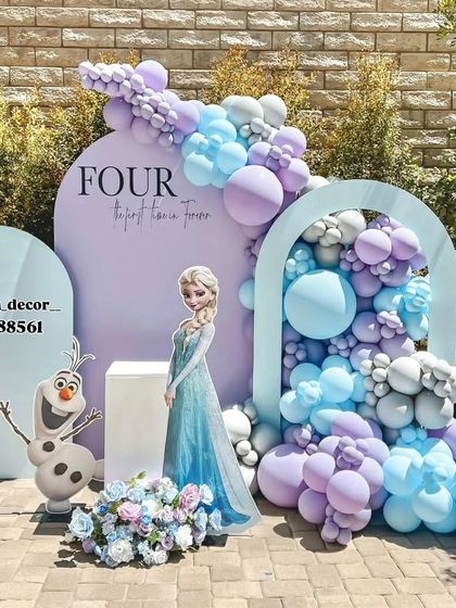 - Full size balloon arch at the main entrance door matching the theme colors.