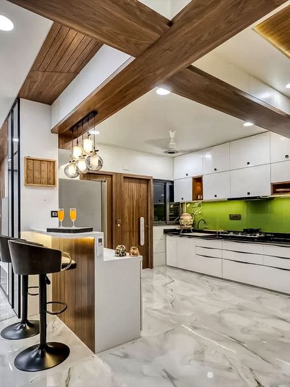 - Kitchens: Custom compact modular kitchen design in all shapes, with glossy finishes, dual tones, and soft LED lighting that makes the space pop.