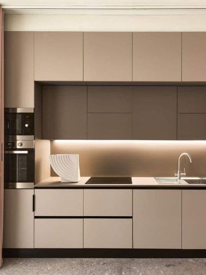 We design and install factory-finished modular interiors for city homes, with space-saving furniture, quick setup, and lighting details for kitchens, living rooms, wardrobes, work nooks, and pooja units.