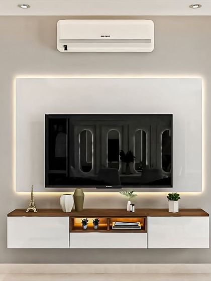 - Living Rooms: Floating TV unit designs with textured back panels and hidden LEDs for that inviting look.