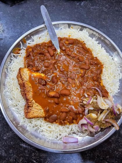 - Rajma Masala: Kidney beans in onion-tomato gravy with Desi Ghee tempering.