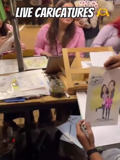 After more than 10 years and 250+ events, I’ve got a handle on keeping things light and fun. Whether your party’s in Delhi or you want me to travel, I just need a decently lit spot with a table and chairs — I take care of the rest. Sometimes the crowd is huge, so not everyone gets drawn, but I work quick and make sure the vibe stays lively.