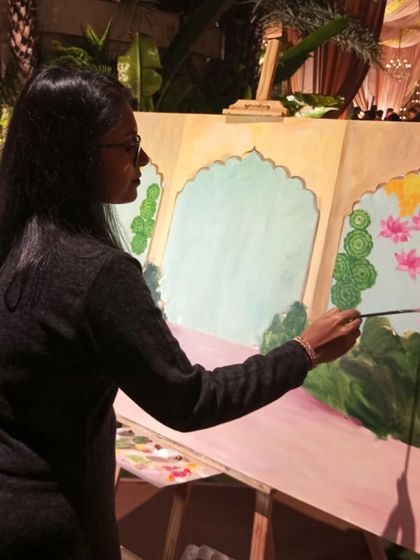 Hey, I’m Aashi Jain. Painting is my chill zone, my own shaanti (peace). Folks say, 'Aashi, you make it look easy!' But bro, it’s been 10 years of nonstop brushwork. Best part? Like that time I painted a girl with her dadi (grandmom) who passed away, by mixing two photos. Seeing her smile, feeling close to her dadi again – that’s why I do this. Whether I’m painting live at a shaadi (wedding) with Pritam blasting, or bringing old photos back to canvas-life, I’m just freezing memories. And man, I love it.