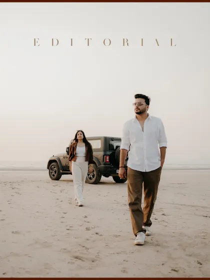 We create custom pre-wedding photos and videos for couples, including candid shoots at your choice of location, pet-friendly options, Save the Date films, and drone shots, with a limited number of clients for personalized attention.
