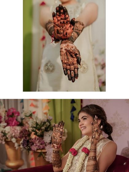 Your bridal mehendi should be as unique as your love story. I specialize in creating personalized designs that capture your journey, from couple portraits and varmala scenes to meaningful symbols and dates.