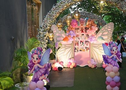 We create magical wonderlands with our butterfly and fairy themes. These setups often feature pastel color palettes, large butterfly wing props for photo ops, shimmering sequin walls, and custom backdrops to make your little one feel like they've stepped into a storybook.