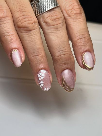 I specialize in classic French manicures with creative twists. My service includes variations like floral designs, cateye effects, and chrome finishes layered onto the traditional French base.