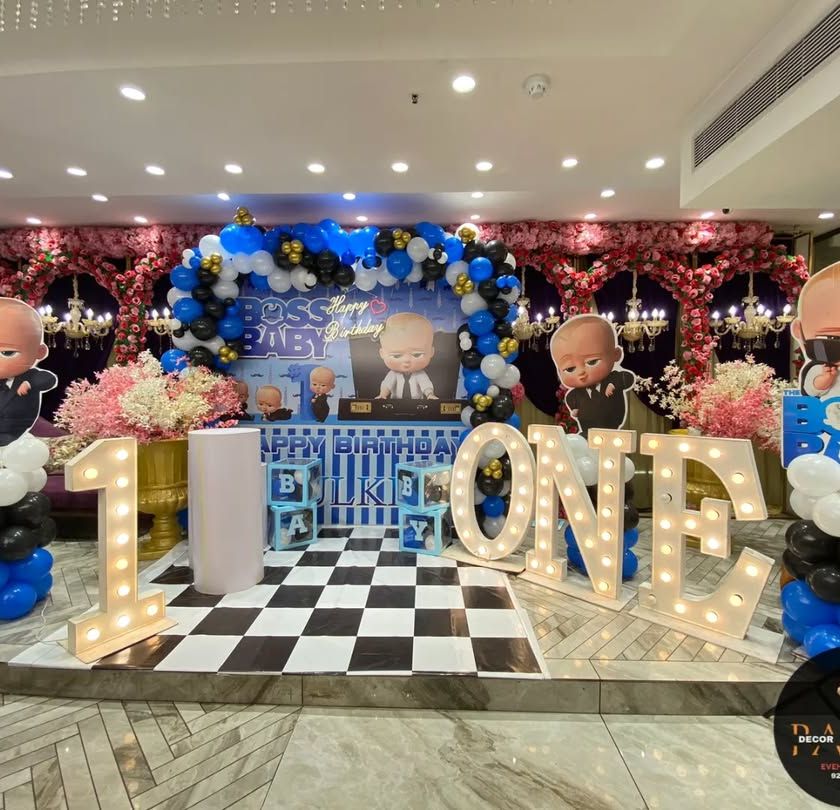 I specialize in creating immersive themed parties, especially for first birthdays. From popular characters like Boss Baby and Cocomelon to imaginative adventures like space or jungle safaris, I handle everything from the main backdrop to the small details. I can work in large halls or create a magical setup right in your home.
