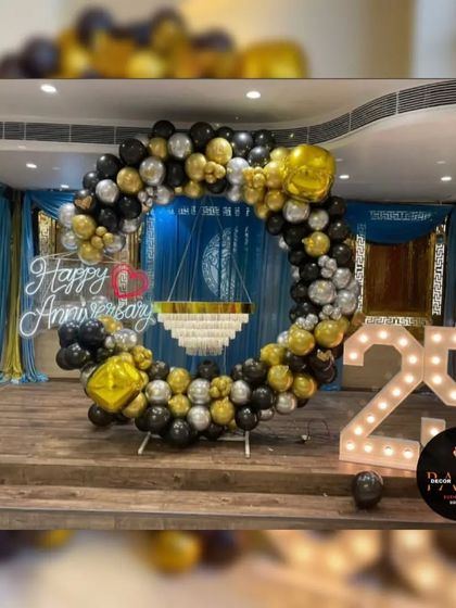 I design decorations for anniversaries of all kinds, from the first to the 50th. My service includes balloon arches in various shapes and colors, custom neon signs, and large light-up marquee numbers to celebrate your special year.