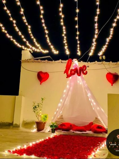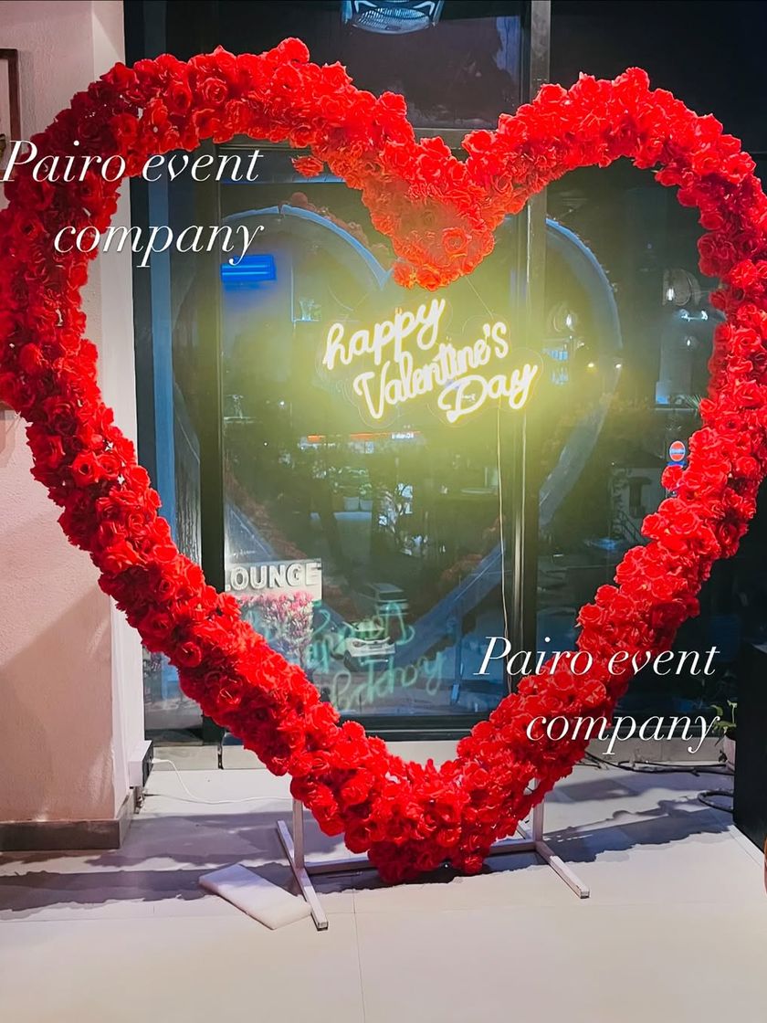 I offer special decoration packages for Valentine's Day to help you celebrate with your loved one. These range from large floral heart backdrops for parties to intimate and romantic room or terrace setups.